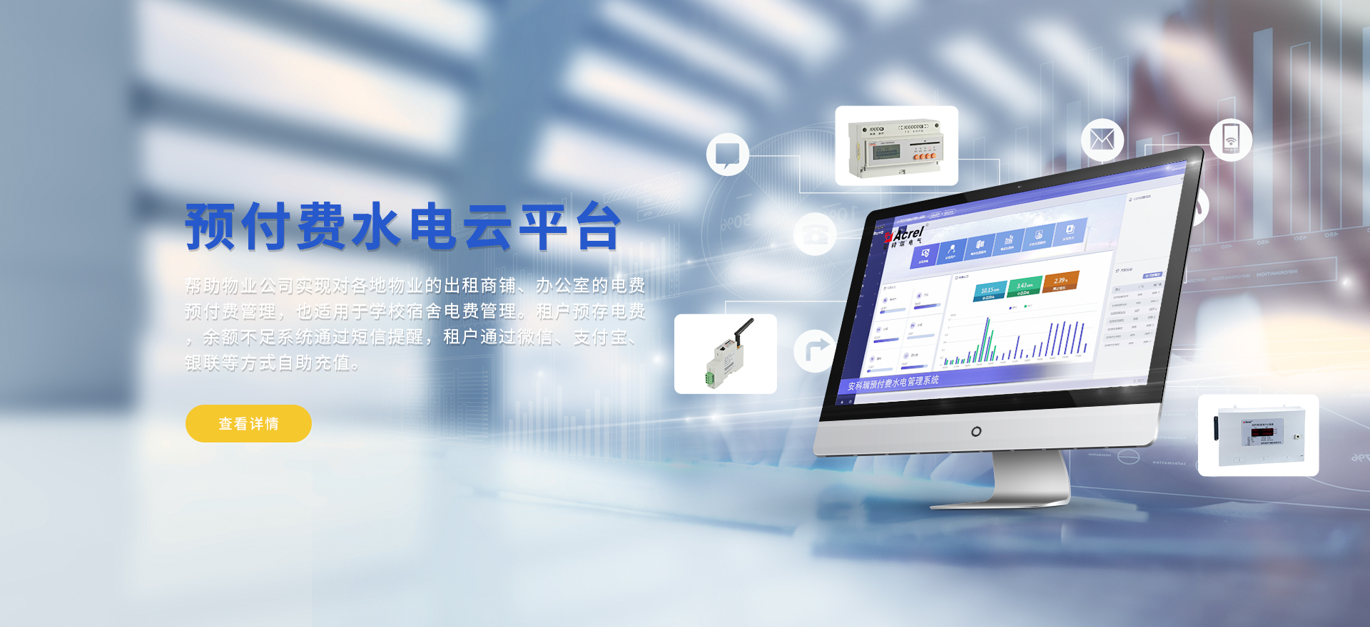 安科瑞提供的解決方案包括Acrel-EIoT能源物聯網云平臺變電所運維云平臺、安全用電管理云平臺環保用電監管云平臺、智慧消防云平臺、能源管理云平臺、工業企業能源管控平臺、遠程預付費云平臺餐飲油煙監管云平臺、電動汽車/電瓶車充電樁收費管理云平臺、電力監控/無線測溫系統、電能質量治理系統、電氣火災監控系統、消防設備電源監控系統、防火門監控系統應急照明和疏散指示系統、智能照明控制系統、醫用隔離電源絕緣監測系統等,幫助用戶實現能源智能化、可視化、精細化管理,提高用能效率和用能安全,為企業節能降耗和實現能源數字化建設提供數據服務。